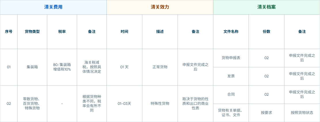 清关费用、海关费及文件资料请查看明细表